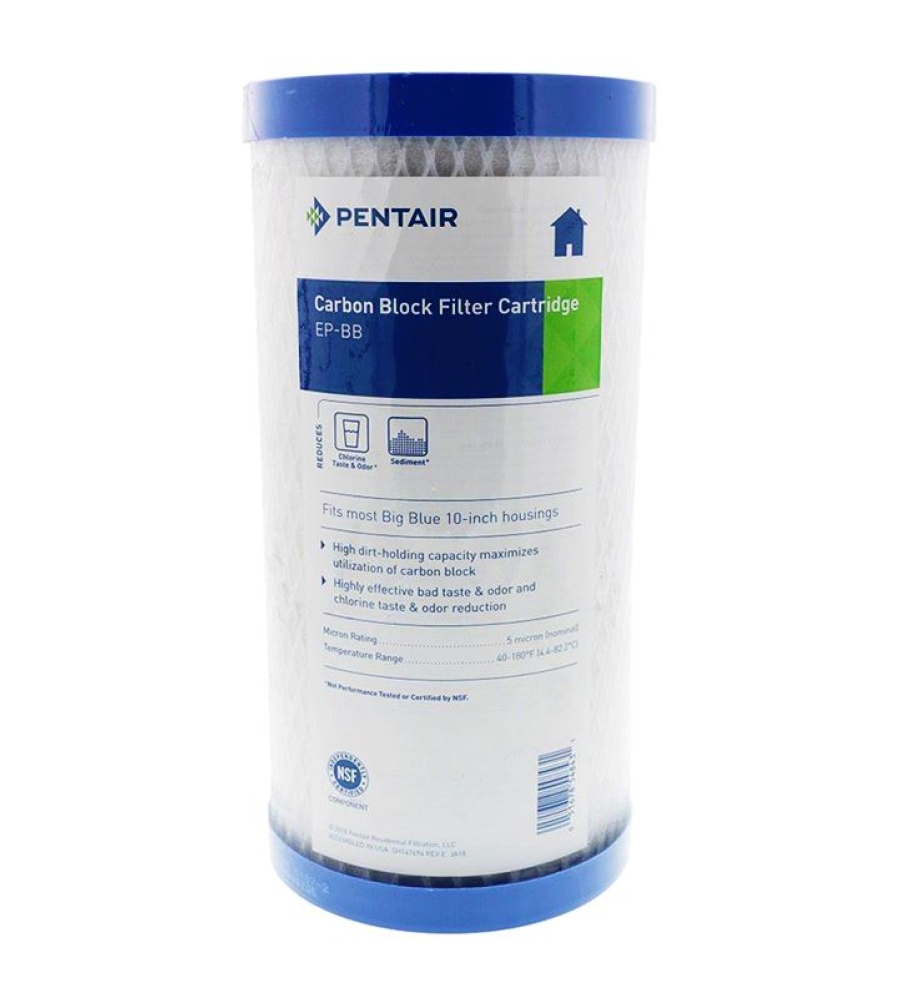 Το ανταλλακτικό φίλτρο ενεργού άνθρακα Big-Blue Pentair EP-BB-10″ μπορεί να τοποθετηθεί σε συσκευή ενός ή δύο σταδίων μαζί με ένα φίλτρο πολυπροπυλενίου για ακόμα πιο αποτελεσματική φίλτρανση. Είναι ιδανικό για χρήση σε οικιακούς και εμπορικούς χώρους, για επαγγελματικά συστήματα επεξεργασίας νερού, υπηρεσίες εστίασης και βιομηχανικές εγκαταστάσεις.