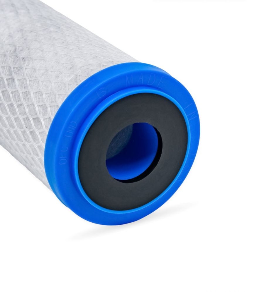 1) Συμπαγής ενεργός άνθρακας (Carbon Block), που επιτυγχάνει τη πλήρη φίλτρανση του νερού