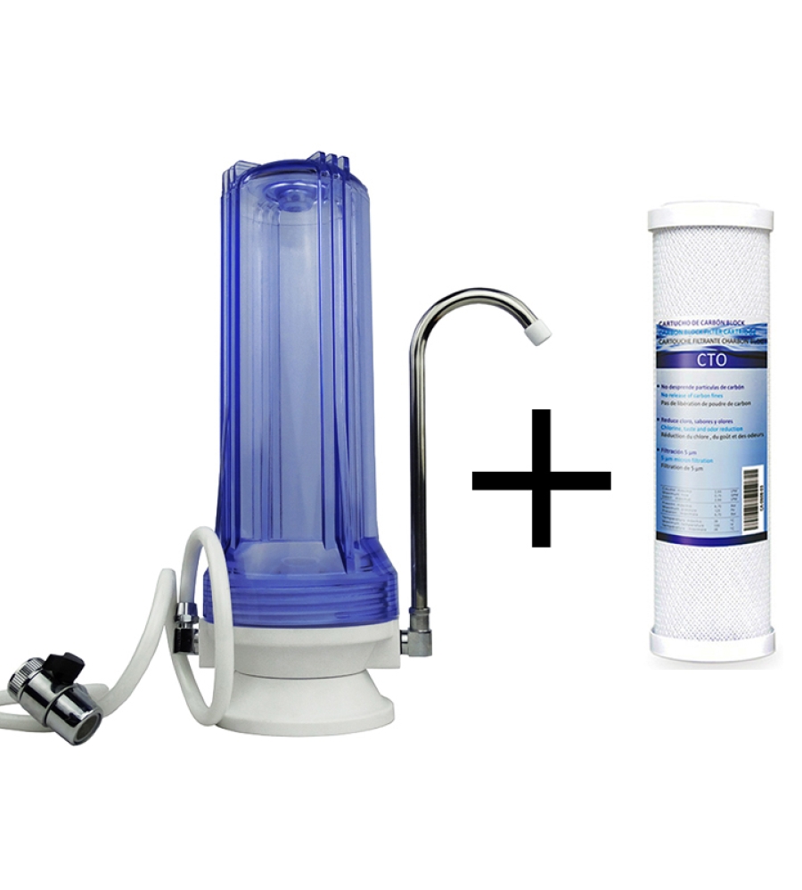 Το φίλτρο άνω πάγκου είναι ένα πλήρες σύστημα φίλτρανσης νερού οικιακής χρήσης για τοποθέτηση πάνω στον πάγκο της κουζίνας. Υδροδοτείται απευθείας από την οικιακή βρύση, μέσω ειδικού αντάπτορα που προσαρμόζεται εύκολα στις περισσότερες οικιακές μπαταρίες κουζίνας. Η εγκατάσταση και απεγκατάσταση του φίλτρου άνω πάγκου είναι πολύ απλή, καθιστώντας το μια φορητή λύση φίλτρανσης νερού. Μπορείτε να το πάρετε μαζί σας π.χ στην εξοχική σας κατοικία ή στις διακοπές. Τα φίλτρα αντικαθίστανται εύκολα και γρήγορα.
